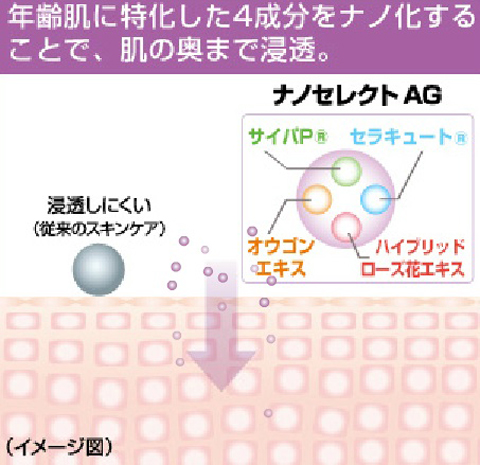 このナノセレクトAGは普通のスキンケア化粧品では浸透しにくい